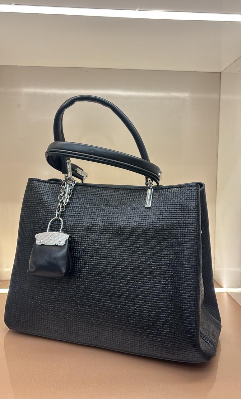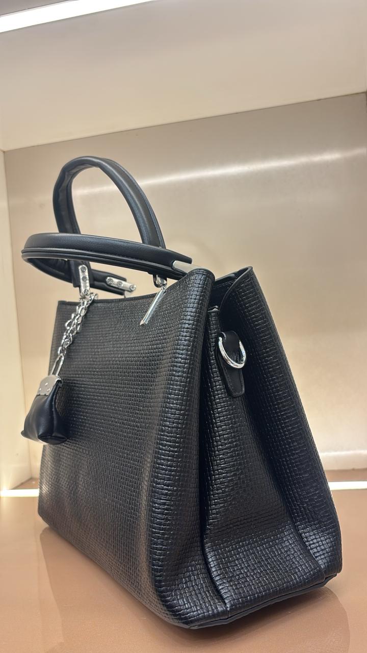 This is a premium BLACK textured handbag with a sophisticated quilted/ribbed texture pattern. It's a classic tote-style design that appears to be a luxury status/statement bag - perfect for your resale business targeting customers who want elegant, branded-looking pieces.