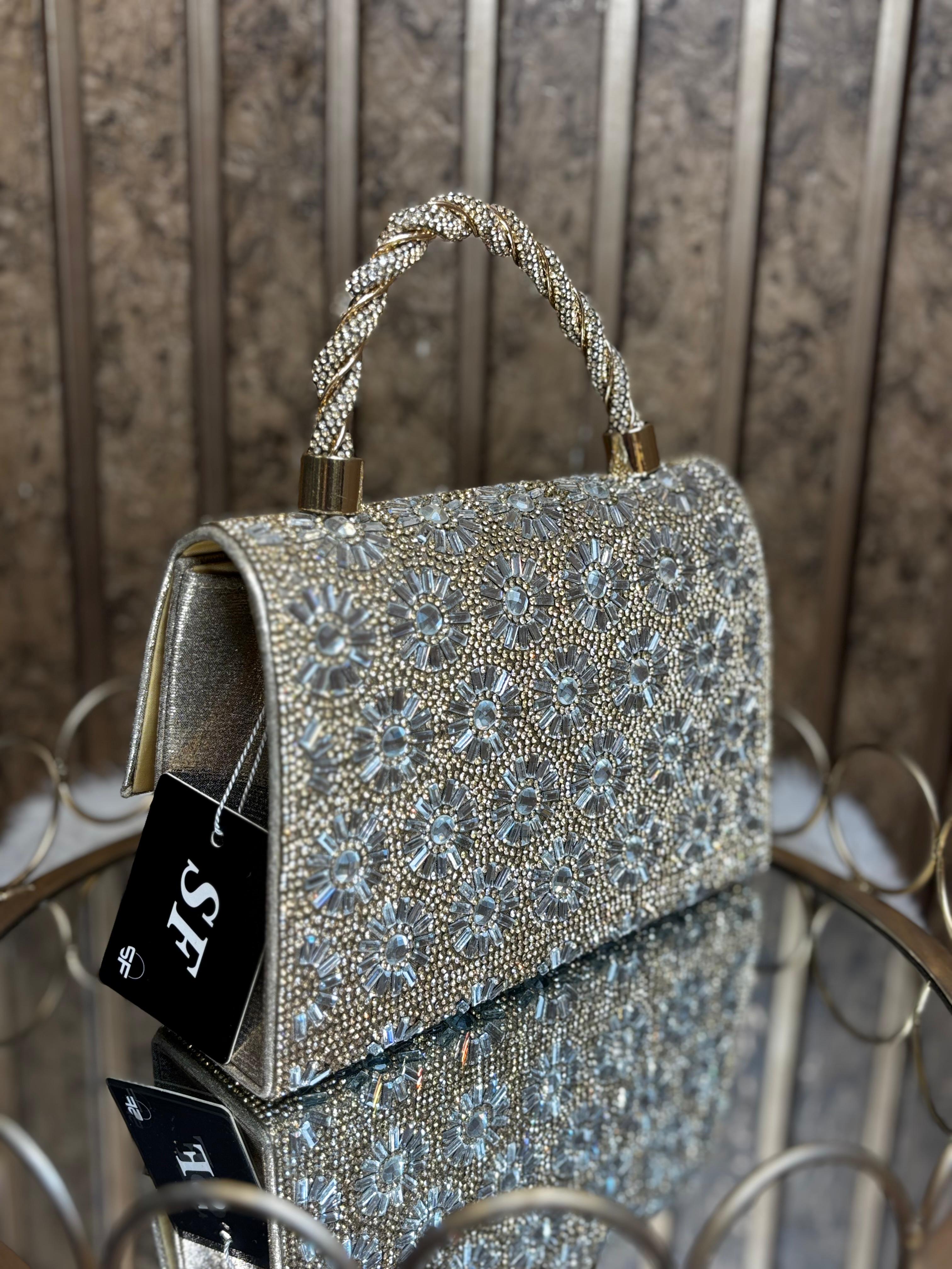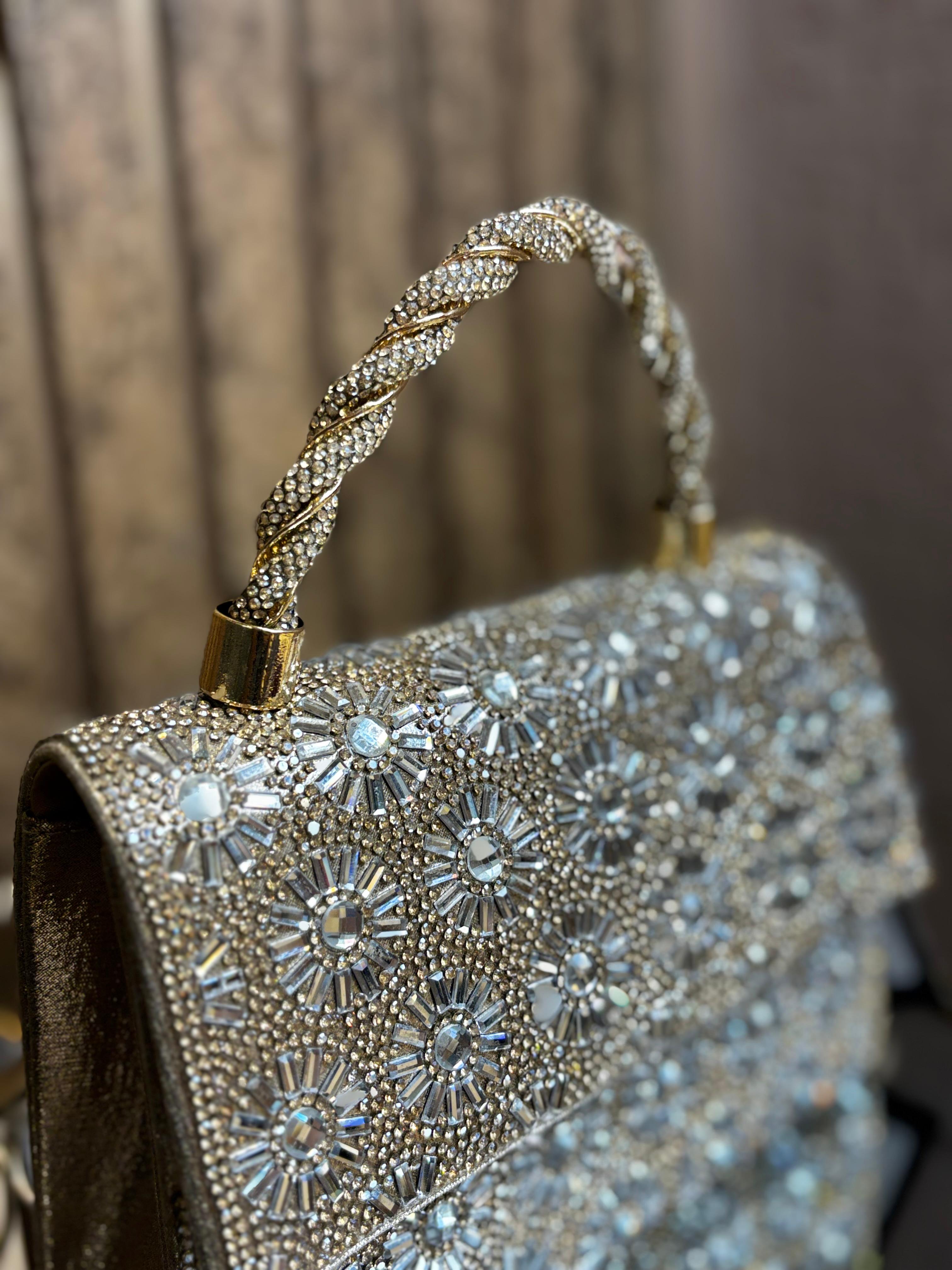 Starlight Formal Handbag - A luxurious evening clutch featuring intricate crystal beadwork and metal mesh construction, perfect for weddings, formal events, and special occasions.